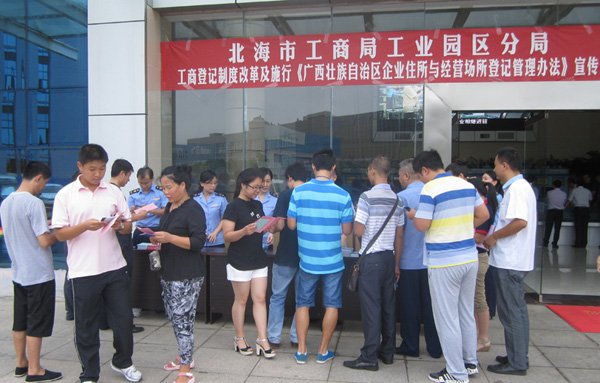 在中國電子北海產(chǎn)業(yè)園宣傳現(xiàn)場,工業(yè)園區(qū)工商分局負(fù)責(zé)人表示,“從材料的申請?zhí)峤恢赁k證,承諾為期7個(gè)工作日辦好,根據(jù)園區(qū)的優(yōu)質(zhì)企業(yè),特事特辦,急事急辦,材料齊全的即可當(dāng)天頒證。”據(jù)了解,此次政策免去驗(yàn)資等手續(xù),不但節(jié)約時(shí)間,還降低企業(yè)成本。中國電子北海產(chǎn)業(yè)園園區(qū)企業(yè)北海高創(chuàng)電子信息孵化器有限公司領(lǐng)到了新版營業(yè)執(zhí)照,新版由以前的橫版改為豎版,沒有了實(shí)收資本一項(xiàng),并且左下角有一個(gè)二維碼,掃描成功后就能看到企業(yè)名稱、法人、注冊時(shí)間等登記信息。工作人員表示,“這次工商登記制度改革對于創(chuàng)業(yè)者最大的實(shí)惠就是注冊資本由實(shí)繳改為認(rèn)繳登記,企業(yè)籌集資金的壓力就小了很多。而且現(xiàn)在辦理執(zhí)照不需要再提供驗(yàn)資報(bào)告等各種材料,只提供場地證明、公司章程就可以申請?jiān)O(shè)立登記,提交的資料簡化了,手續(xù)自然就簡單便捷了,從人員的招募到辦理登記,節(jié)省了幾個(gè)月的時(shí)間。”北部灣電子信息科技企業(yè)孵化器的創(chuàng)業(yè)青年者紛紛前來咨詢,工業(yè)園區(qū)工商分局熱情、細(xì)致地為咨詢者解惑,同時(shí)發(fā)放了申辦宣傳材料,為創(chuàng)業(yè)者們提供專業(yè)、便捷、高效的全方位咨詢服務(wù)。