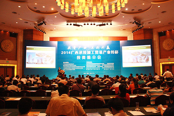 2014年7月16日,由自治區(qū)商務(wù)廳主辦的2014廣西承接加工貿(mào)易產(chǎn)業(yè)轉(zhuǎn)移投資推介會在深圳舉行。自治區(qū)政府副秘書長魏然,深圳市經(jīng)濟(jì)貿(mào)易和信息化委員會副主任高林等領(lǐng)導(dǎo)和嘉賓為會議致辭。自治區(qū)商務(wù)廳、北部灣辦分別從不同角度對廣西承接加工貿(mào)易產(chǎn)業(yè)轉(zhuǎn)移投資環(huán)境進(jìn)行了推介。北海、欽州、梧州、南寧四個國家級加工貿(mào)易梯度轉(zhuǎn)移重點(diǎn)承接地,欽州保稅港區(qū)、憑祥綜合保稅區(qū)、北海出口加工區(qū)、中馬欽州產(chǎn)業(yè)園、東興國家重點(diǎn)開發(fā)開放試驗(yàn)區(qū)、南寧高新技術(shù)產(chǎn)業(yè)開發(fā)區(qū)、中國電子北海產(chǎn)業(yè)園、梧州市粵桂合作特別實(shí)驗(yàn)區(qū)八個重點(diǎn)園區(qū),分別就各自的產(chǎn)業(yè)布局、投資環(huán)境、政策優(yōu)勢進(jìn)行了推介。香港特區(qū)政府駐粵辦、香港貿(mào)易發(fā)展局、深圳外商投資企業(yè)協(xié)會、深圳臺商協(xié)會、深圳市加工貿(mào)易企業(yè)協(xié)會、深圳市企業(yè)聯(lián)合會、深圳市電子行業(yè)協(xié)會及廣東各類加工貿(mào)易企業(yè)約400人出席了推介會。