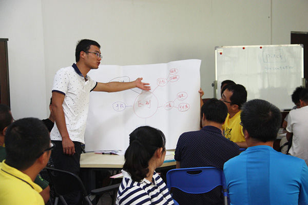 體驗課由中國地質大學博士、子謙國際創(chuàng)業(yè)教育學院首席專家、河北地質大學創(chuàng)新創(chuàng)業(yè)教育學院執(zhí)行院長與教學總監(jiān)朱燕空作為主講。體驗課以新常態(tài)下雙創(chuàng)發(fā)展及市場拓展為背景,就創(chuàng)業(yè)思維內涵、體驗創(chuàng)業(yè)思維之旅、創(chuàng)業(yè)思維與管理思維對比,與學員們探討交流雙創(chuàng)發(fā)展之路,布置各小組“制造未來”任務,設想了創(chuàng)業(yè)之路所遇到各種機遇與困阻。朱院長表示,創(chuàng)業(yè)成長期,大部分創(chuàng)業(yè)青年不缺乏目標和想法,著實選擇一個有效的路徑去實現(xiàn),路徑有很多,每條路徑都代表著一種可能性,并且充滿了不確定性,關鍵在于如何找到有效的路徑,需要我們去行動、反思和調整;而不是過多的詳細規(guī)劃,注重逐步執(zhí)行。面臨不確定性,朱院長結合自身創(chuàng)業(yè)經(jīng)驗,與學員們探討分享創(chuàng)業(yè)新思維與企業(yè)管理模式,并運用了大量案例對市場拓展做指導。課堂最后,朱院長與學員逐個交流創(chuàng)業(yè)相關熱門話題。