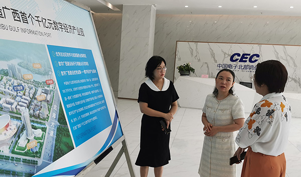 2023年7月19日上午,北海市市委常委、市紀委書記劉纓帶隊到中國電子北部灣信息港開展“壯大實體經(jīng)濟推動高質(zhì)量發(fā)展”調(diào)研。中國電子北海產(chǎn)業(yè)園發(fā)展有限公司副總經(jīng)理劉曉娟現(xiàn)場向劉纓書記匯報了信息港項目建設、運營情況。